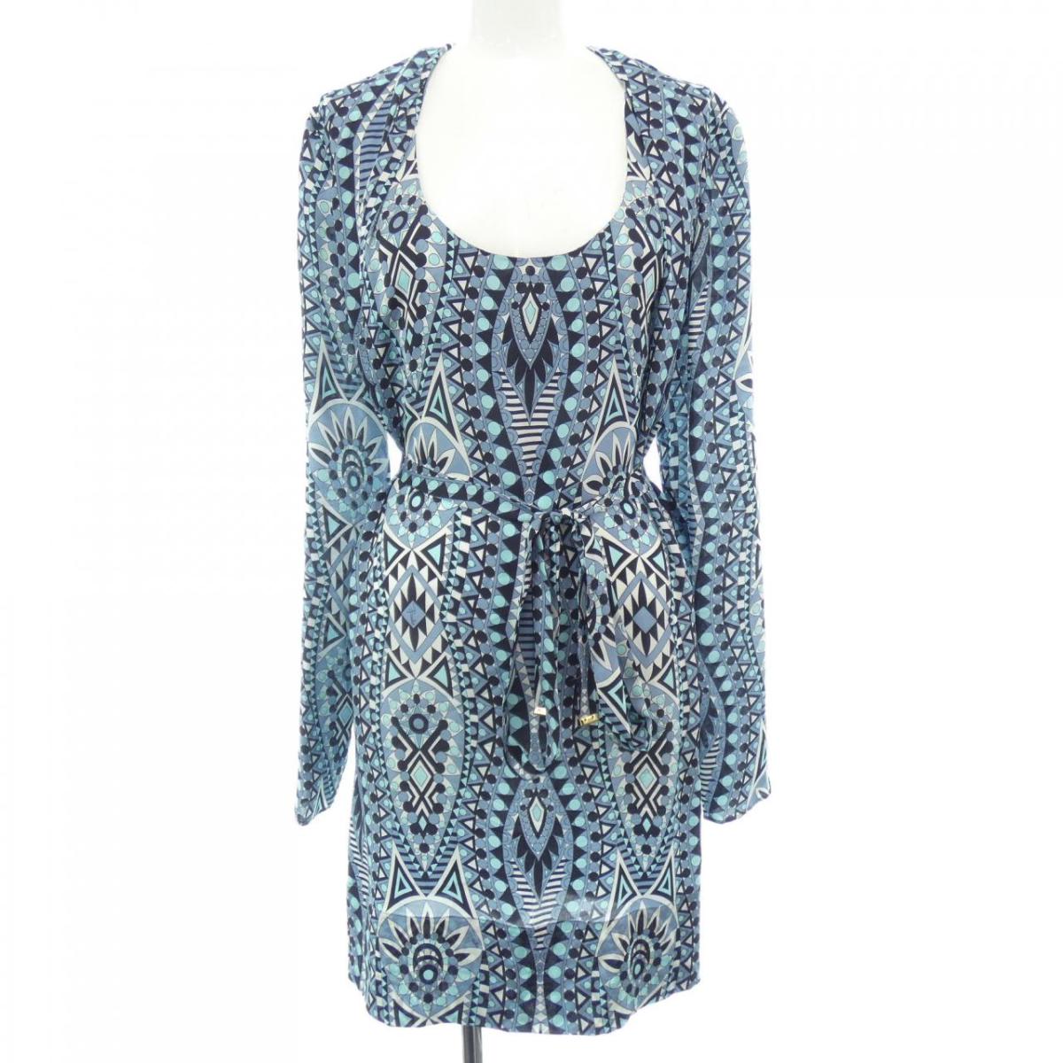 お歳暮 新着 中古 Emilio Pucci エミリオプッチ ワンピース 長袖 ひざ丈 ブルー ベージュ マルチ ブランディア 店 人気が高い Erieshoresag Org